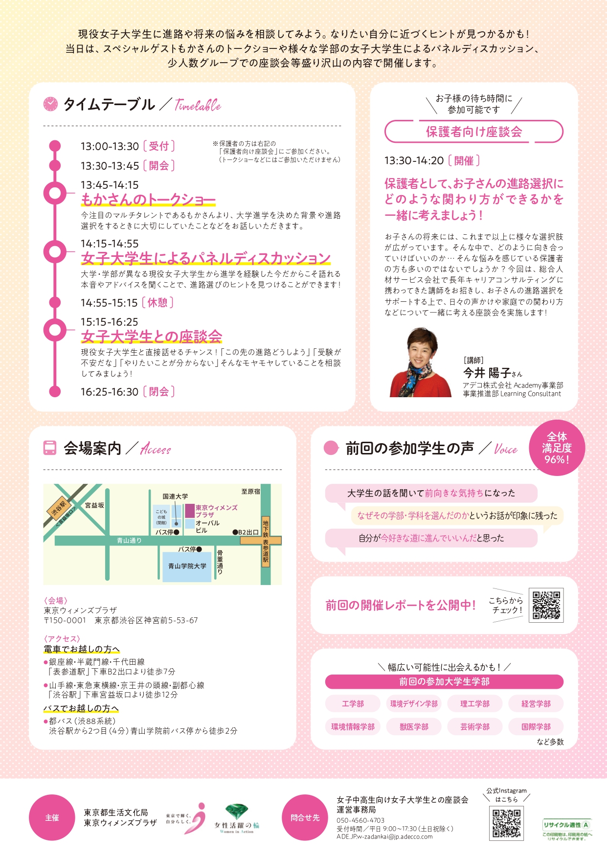 女子中高生向け 女子大学生との座談会 好評につき第2弾!